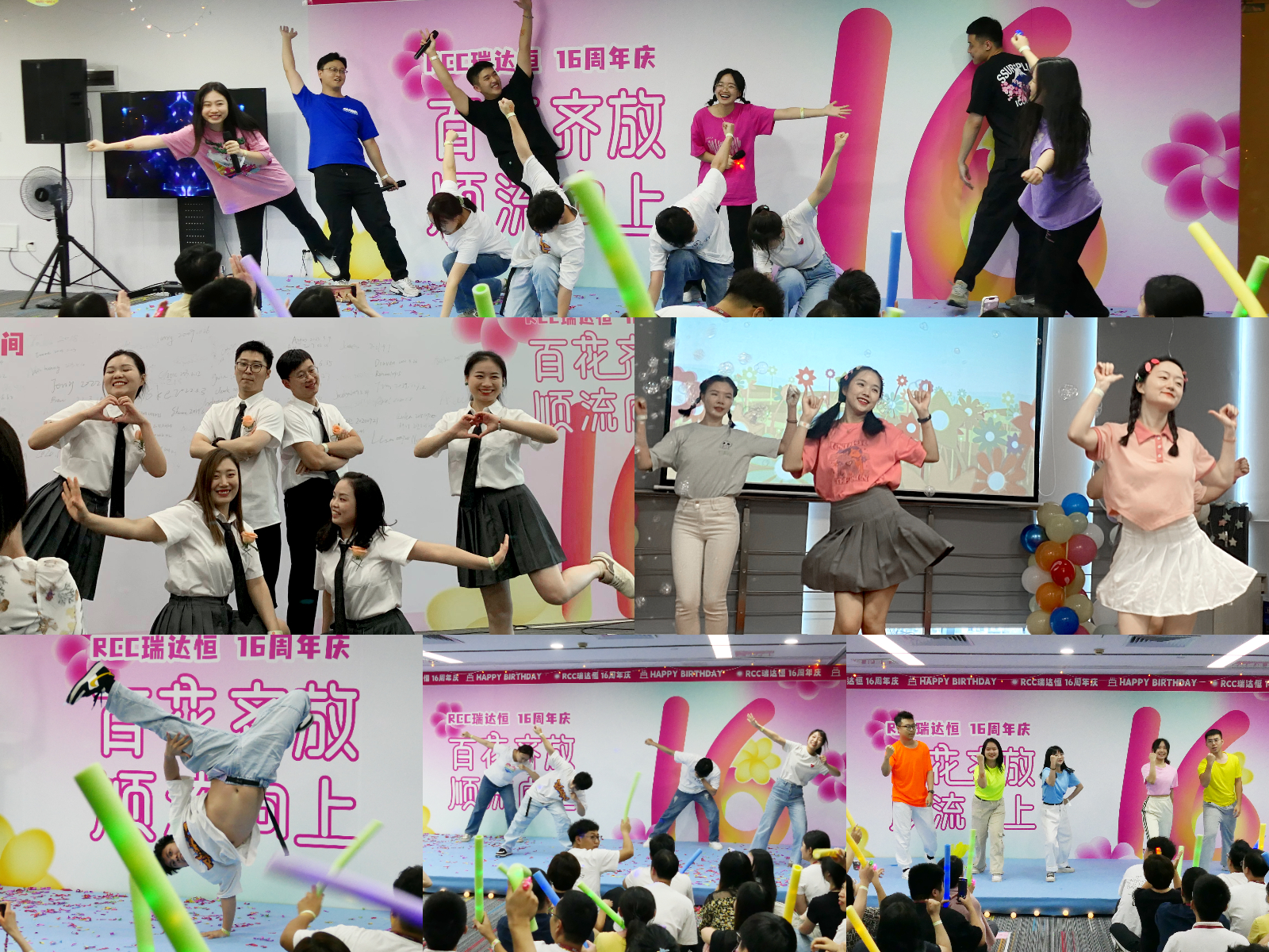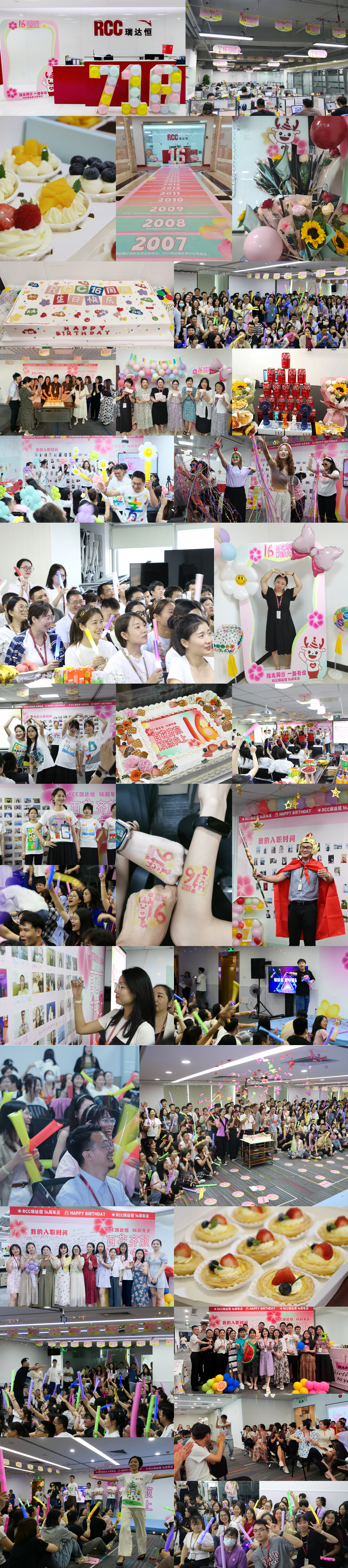 ? ? ? 辦公室內(nèi)的搭子接頭點成為了RCC人的熱門打卡地,不同部門的伙伴一起花式復刻海報姿勢,留下16周年限定合照。